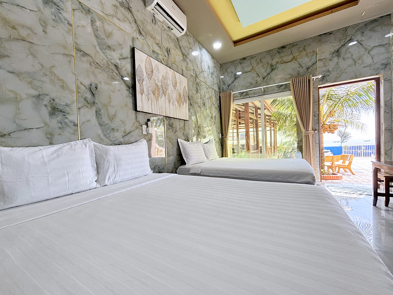 Deluxe seaview twin bed room with spacious space, accommodating 6 adults, very suitable for large families.